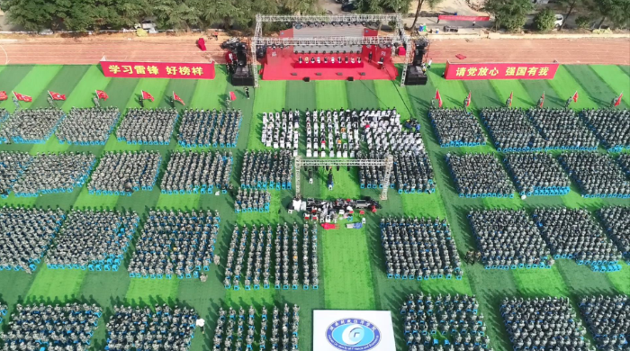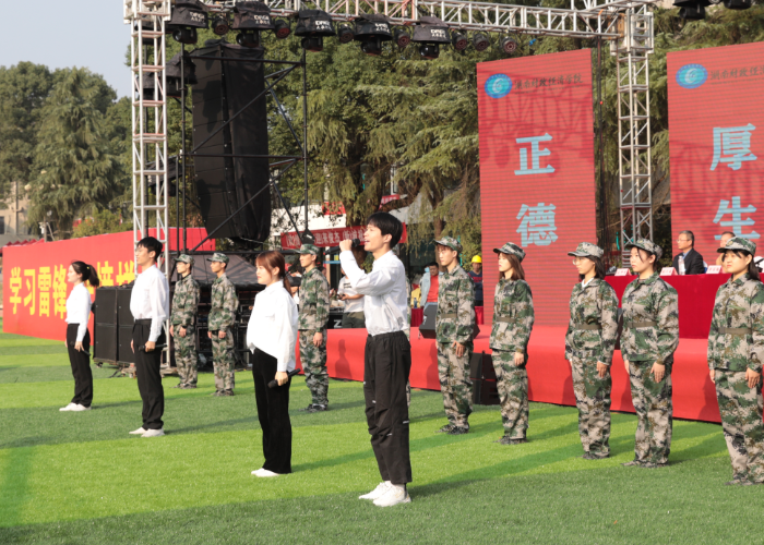 在聆听了4位在校生代表高亢激情的《青年颂词》后,全体新生进行了集体宣誓,立志成为有理想、有本领、有责任、有担当的新时代大学生。主席台前方,“请党放心,强国有我”“学习雷锋好榜样”标语,在阳光和青春的照耀下,熠熠生辉。