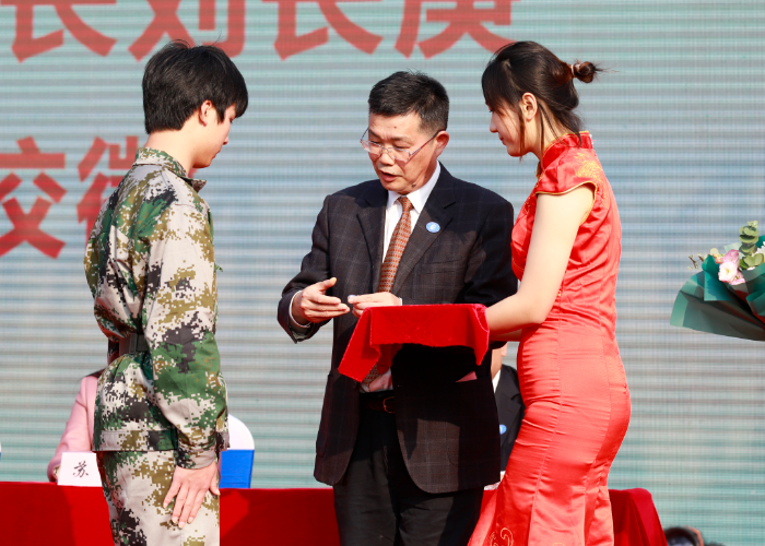 beat365中文在线官网校长刘长庚向新生代表授予校徽 马海彬/摄