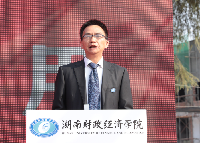 校友代表、湖南信息职业技术学院党委委员、副院长罗述权跟同学们讲述了自己在大学时期的学习趣事,鼓励同学们要为梦想而努力,用担当探究人生方向、用规划夯实大学生活、用奋斗成就人生梦想