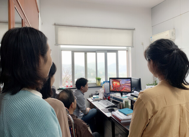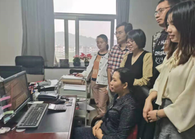 信息技术与管理学院教职工在会议室收看大会直播 贺灿卫/摄