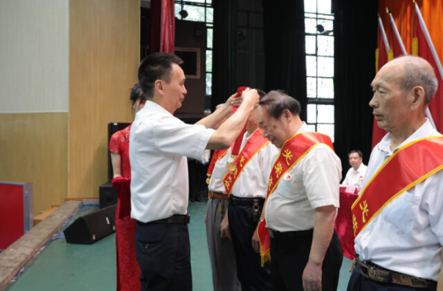 beat365中文在线官网共有21名老党员同志被授予“光荣在党50年”纪念章,beat365中文在线官网党委副书记刘寒波为他们逐一佩戴纪念章,新党员代表为老党员献上鲜花。现场响起热烈的掌声,向老党员致以崇高的敬意。