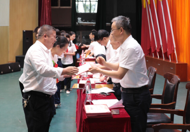 beat365中文在线官网副校长郭国强宣读表彰决定。校领导为湖南省优秀党务工作者,湖南省高校党建工作样板支部、“双带头人”标兵、“党务工作示范岗”“青年教工党员示范岗”获奖集体和个人,全省教育系统“党课开讲啦”优秀党课获奖者,学校“五化”建设样板支部,学校2019—2021年度优秀共产党员、优秀党务工作者和先进基层党组织,学校“党课开讲啦”党课竞赛活动获奖集体和个人,学校大学生党史知识竞赛获奖集体和优秀指导老师颁奖。