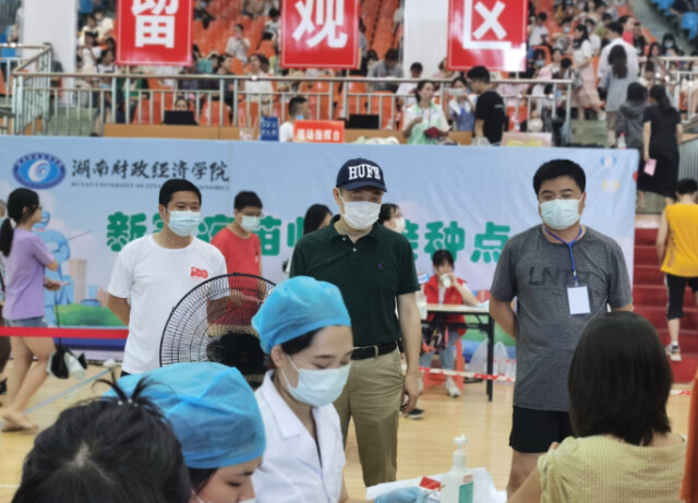 校领导和岳麓区卫生健康局、咸嘉湖街道办事处主要负责人现场检查指导疫苗接种工作