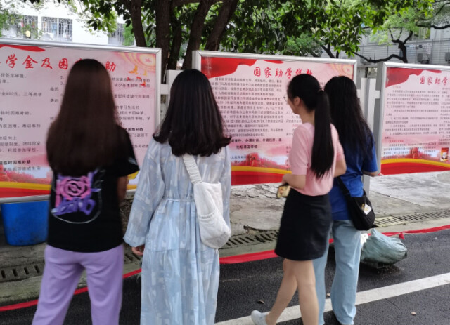 6月2日,beat365中文在线官网在校园主干道摆放庆祝中国共产党建党100周年学生资助政策展板,帮助师生深入了解国家资助政策、学校奖助学金制度,培养学生诚信意识和诚信观念,营造良好的诚信氛围。大批学生在展板前驻足浏览,纷纷表示受益匪浅。