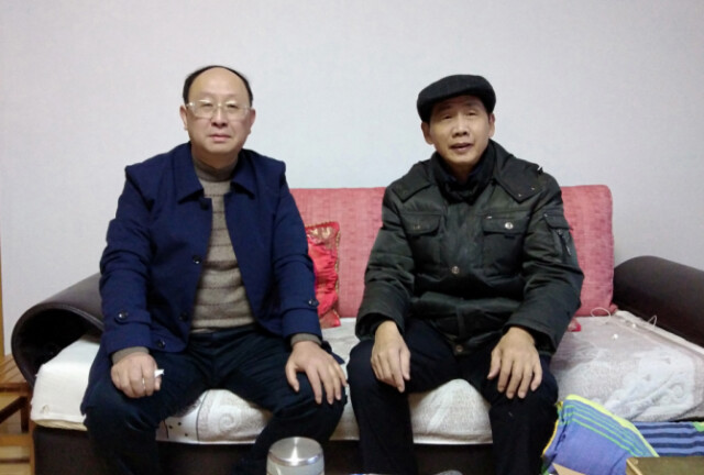 校领导郭国强(左)走访慰问老党员杨国全(右)
