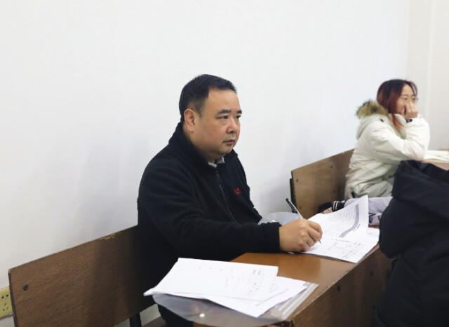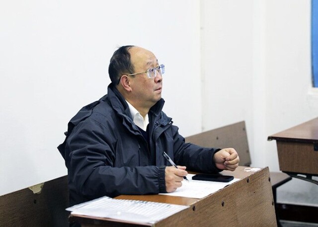 beat365中文在线官网纪委书记李雪山(左)随堂听课 何妍/摄