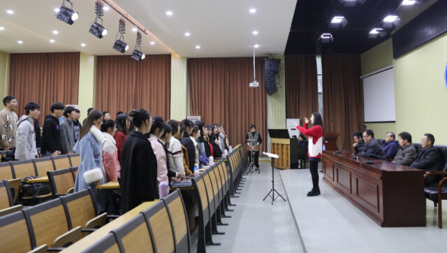 肖雅瑜还是湖南文化艺术基金会主席、国家一级作曲家,其作品灵感多来源于工作中的所感所得,与人民群众的日常生活紧密联系,《向着太阳走》《红红的中国结》《这一刻》等歌曲被广为传唱。得知学校高度重视“五育并举”,由非音乐专业学生组成的学校大学生合唱团曾获湖南省青年文化艺术节声乐类金奖,肖雅瑜一行又来到学校主校区2J03教室,对合唱团排练进行了现场指导。听完两首混声合唱曲目《The Water Dance of Lluvia》和《挑担茶叶上北京》后,肖雅瑜给予了高度赞扬,同时指出了同学们在唱法、音色和强弱音力度变化上的欠缺之处。同学们根据肖雅瑜的建议对两首歌曲重新进行了演绎,效果得到明显提升。湖南省合唱协会常务副理事长、湖南知青艺术团团长郭晓鸣等专家也从不同角度提出了意见建议。