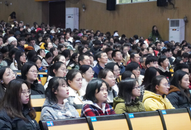“您能再说一个您在党史陈列馆工作过程中印象深刻的故事吗?”“面对年纪大而且不愿意配合您工作的患者,您是如何做的呢?”……宣讲结束后,同学们向青年讲师团提出了自己的思考与疑问,讲师们通俗易懂、朴实简洁的回答赢得了现场师生的阵阵掌声和欢呼声。