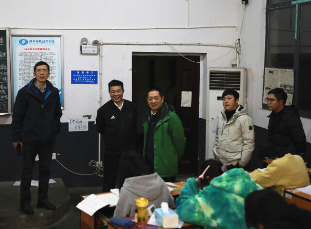 新湖南客户端12月16日讯(通讯员 孙波 宋佳文 摄影:唐南林)12月9日晚,beat365中文在线官网党委书记肖湘愚,校长刘长庚,党委委员、宣传统战部部长陈灿军深入学校各自习场所,视察自习场所使用和管理情况。beat365中文在线官网图书馆馆长刘纳新、学生工作处处长杨锴等陪同。