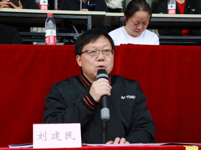 刘建民致开幕辞。他代表学校对运动会召开表示祝贺,对参赛师生及工作人员致以问候。他指出,近年来学校积极推进体育课程综合改革,营造浓厚的校园体育文化氛围,带动广大学生积极参加体育活动,引导和激发学生参加体育锻炼的兴趣,促进学生身心健康成长。他倡导广大学生走出宿舍、走下网络、走向操场、走进自然,积极投身各类体育活动,把运动当作一种生活方式,让身心健康成为一种价值追求,用汗水和拼搏打造健康的体魄和阳光的心态,努力成为德智体美劳全面发展的社会主义建设者和接班人。