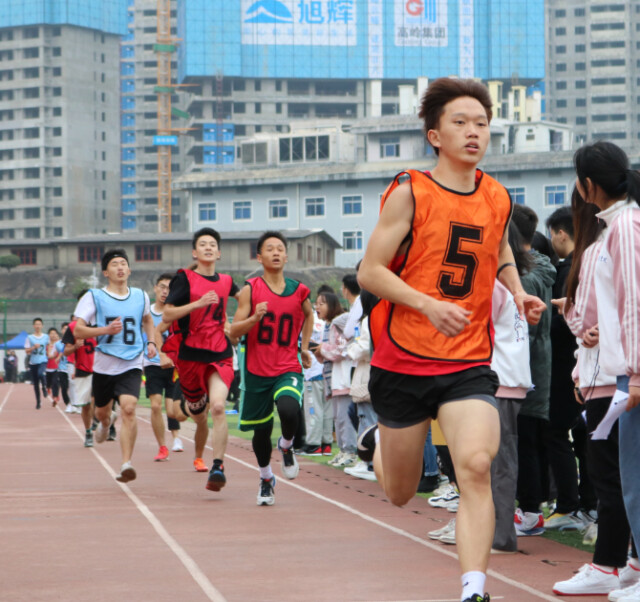 寒风掠过跑道,运动员们在风中摩拳擦掌,跳跃抖腿,为接下来的比赛做充分准备。在男子1500米预决赛现场,各位选手神情严肃,蓄势待发。“砰”发令枪一响,参赛选手如离弦之箭向前奔跑。公共管理学院的高海兵一马当先,整个赛场顿时沸腾起来,加油助威声此起彼伏,络绎不绝。渐渐地,大家的脚步都开始变得沉重起来,比赛气氛愈发紧张,全场同学仍不断为他们加油打气。最终,体育学院的杨远镇与公共管理学院的商海兵获得男子1500米的冠军;会计学院的宋礼郡获得女子1500米的冠军。