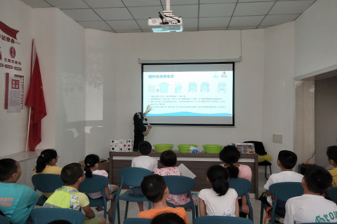 志愿服务队队员为长沙市洪山桥社区的孩子作公益讲座