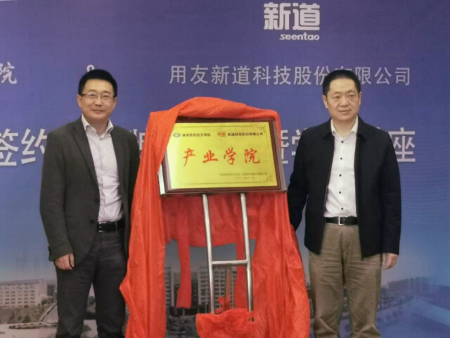 用友新道科技股份有限公司相关代表,学校教务处、发展规划处、工商管理学院、会计学院等部门(二级学院)负责人参加签约仪式。