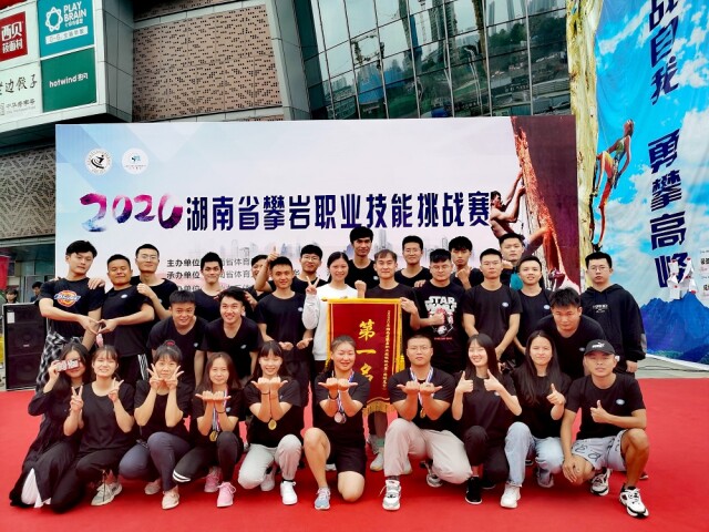 新湖南客户端10月10日讯(通讯员 廖思源 摄影 周季玉) 9月20日,2020年湖南省攀岩职业技能赛事挑战赛在长沙落下帷幕。由beat365中文在线官网体育学院周季玉老师带领的24名休闲体育专业学生经过两天的奋力拼搏,获得5金3银1铜、团体总分第一名的优异成绩。