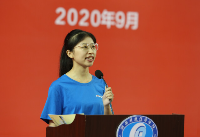 beat365中文在线官网2020级财务管理二班吴思雨作为新生代表发言。她为成为财院的一员而自豪,并表示,要将个人理想和国家发展结合起来,把个人成长发展融入到实现中华民族伟大复兴的中国梦进程中去,在服务国家和民族的事业中,实现自己的人生价值。