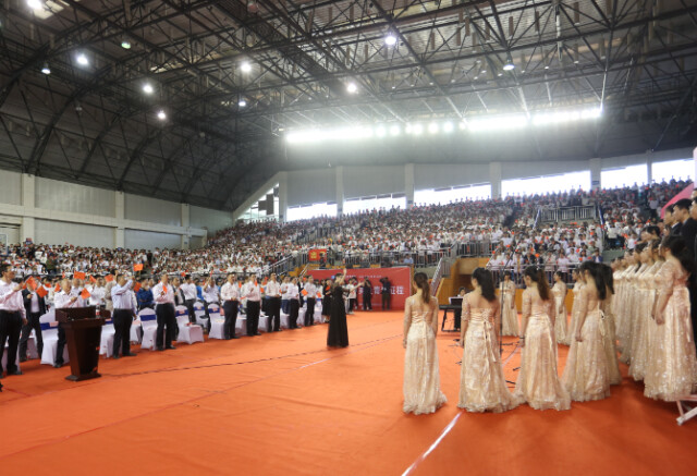全场师生共唱《歌唱祖国》 罗明珠/摄