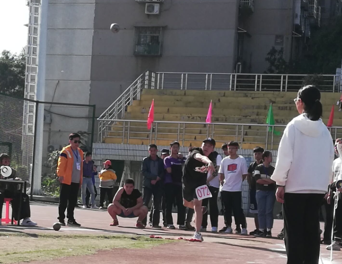 “请参加女子组铅球比赛的同学们速到检录组检录”,广播里传来的声音让即将上场的运动员们顿时一跃而起,纷纷轮流上场试投,个个气势十足,胜券在握。比赛时,只见来自继续教育学院的崔韩彬从容不迫地走入白色投掷圈,将铅球举在右手,弯曲肘部,用头和右手夹住铅球,慢慢地降低重心,等待力量最终爆发的那一刻,沉静的脸上透着一股自信、倔强与坚毅,这时,她凝气定神,而后右腿用力一蹬,将手中的铅球奋力一投,在空中划出了一道极完美的抛物线。围观的同学们瞬间沸腾了,欢呼声和阵阵掌声响起,最终崔韩彬不负众望,以8.03米的好成绩荣获女子铅球赛第一名。来自工商管理学院的王耀晖和体育学院的戴珺杰均以9.45米的成绩荣获男子铅球冠军。