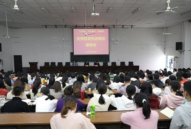 李云柯)11月6日下午,湖南财院在二教阶梯一教室举行“不忘初心、牢记使命”主题教育优秀校友先进典型报告会,用身边先进典型的事迹来引导广大党员干部、教职工、学生党员牢记责任、勇担使命,进一步坚定干事创业的信心和决心。湖南财院党委委员、组织部部长王颖梅主持报告会,党总支(直属党支部)副书记、学生党支部书记、教务处和学生处副科级以上干部、毕业班辅导员、全体毕业生党员参加报告会。