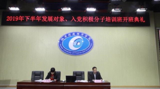 吕铭浩)11月6日下午,湖南财院在二教学楼阶梯三教室举办2019年下半年发展对象、入党积极分子培训班开班典礼。湖南财院党委书记肖湘愚、党委副书记兼党校校长晏金平,党委委员、组织部部长兼党校常务副校长王颖梅,各二级党总支负责人,2019年下半年入党积极分子、党员发展对象培训班学员参加。典礼由王颖梅主持。