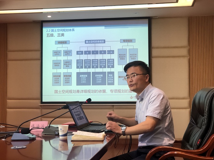 签约仪式后,傅海滨为师生作了题为《国土空间规划视角下关于旅游规划的思考》的讲座。傅海滨从现行规划体系的问题与矛盾、我国规划体系改革的三个阶段、国家重大战略部署三个方面介绍了国土空间规划的由来以及国土空间规划的概念内涵、目标及规划体系,重点分析了国土空间规划背景下旅游规划的现实问题,并从紧密对接国土空间规划、融入国土空间规划全新体系、服务旅游市场全新需求、加强旅游规划监管四个方面探讨了当前背景下如何做好旅游规划以及用全域旅游思维引领新时期旅游规划的思路。报告结束后,师生们纷纷就国土空间规划体系、旅游规划编制中的一些细节问题以及企业对人才的知识和技术要求等问题向傅海滨和邓昭明进行了咨询交流。