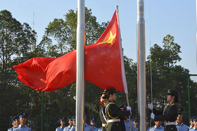 湖南日报·新湖南客户端10月1日讯(通讯员 邵佳丽 肖梅秀 刘青 向玉婷 辛林萌)“迎国旗!”一声令下,护旗手迈着铿锵有力的步伐,护送五星红旗走向升旗台。“升国旗,唱国歌!”展旗手奋力挥动着手臂,将鲜艳的五星红旗抛向空中,湖南财院全体师生行注目礼,高唱国歌,现场弥漫着庄严肃穆的气息。