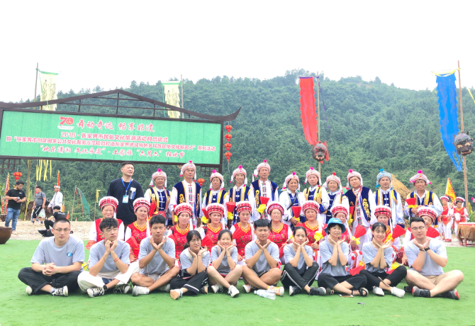 经济学院星辰志愿队与部分参演土家六月六“晒龙袍”活动的演员合影 闫建芳/摄