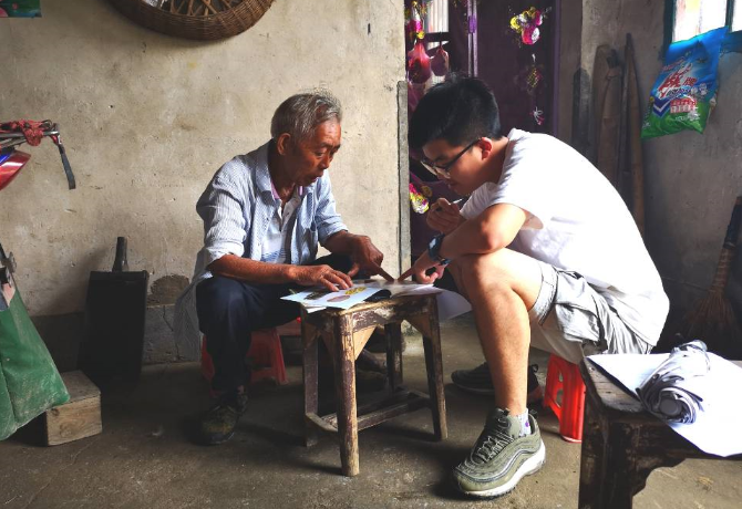 工程管理学院绿园队成员在光明村进行入户访谈调研 蒋阳洋/摄