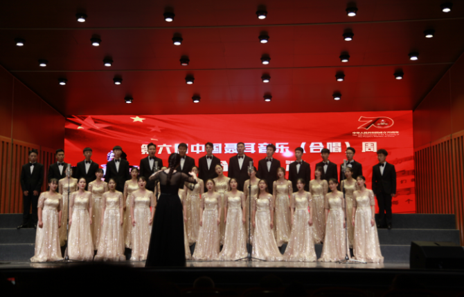 音乐(合唱)周活动期间,湖南财院大学生合唱团参加了在春城剧院和南屏步行街举行的展演活动,演唱了《走进美丽,走进神奇》《启程》两首歌曲。沁人肺腑的歌声、悦耳动听的钢琴伴奏与极富节奏的指挥相呼应,给现场的观众们带来了一场视听盛宴。