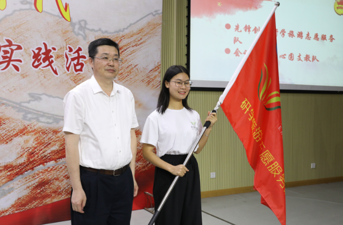 肖湘愚为社会实践服务团队授旗