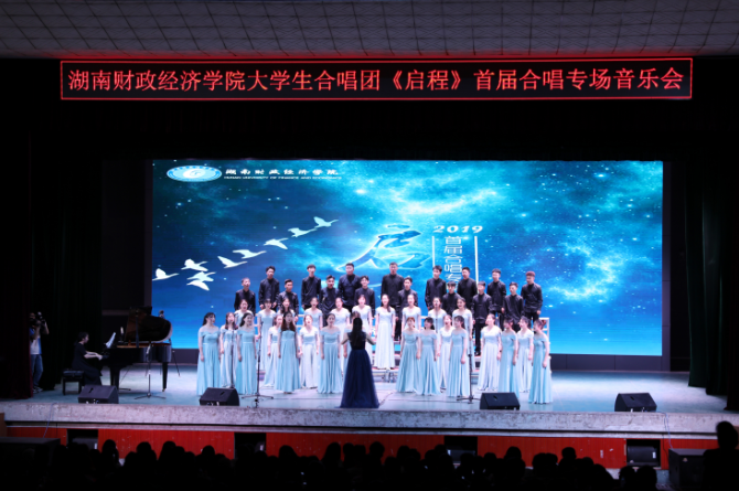 当晚,湖南财院学校大礼堂座无虚席,1000多名师生前来聆听了这场全校首届合唱专场音乐会。音乐会由人文与艺术学院老师张亚男担任首席指挥,校大学生合唱团参演。湖南省文联副主席、湖南省音协主席邓东源,湖南省文联副主席、湖南省音协原主席黎晓阳,湖南省委宣传部文化体制改革和发展办公室副主任雷锟,省委教育工委宣传部调研员陈解,长沙市直机关工委副书记胡金文,湖南省教育厅艺术教育委员会秘书长刘大维,湖南省音协副主席、湖南省音协合唱学会会长周跃峰受邀出席。湖南财院党委书记肖湘愚,党委副书记晏金平,副校长樊晓平、刘茂盛,党委委员、组织部部长王颖梅,党委委员、宣传统战部部长陈灿军等校领导到场观看。