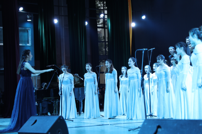 此次音乐会共14首曲目,分为“温馨序曲”“浑厚男声”“纯美女声”“主题与颂歌”四个篇章。歌声响起,喧嚣褪去,观众渐入氛围。混声曲目《山楂树》拉开了音乐会帷幕,悠扬绵长的旋律让现场观众感受到纯真浪漫的乌拉尔风情,忍不住遐想那段淳朴动人的爱情故事。身着蓝色礼服的女生们演唱的《雪花的快乐》,优美的旋律让人仿佛化作片片雪花,自由无尽地飘舞,一首《母亲的微笑》,温馨得令人动容。《THE SEAL LULLABY》《Samba de las Escrituras》一静一动,歌声时而婉转动人,时而激情澎湃,使观众彻底沉浸在音乐所带来的美好世界中。男生合唱《渔阳鼙鼓动地来》还原了“安史之乱”时边关叛军揭竿而起的景象,悲愤激昂的情绪感染了现场每一位观众,将音乐会推向高潮。随后的《走进美丽,走进神奇》《Chili Caliente》《Amavolovolo》《沂蒙山歌》,让大家领略中国的大好河山与淳朴的民俗风情,并在歌声中漂洋过海,感受世界各地的热情欢快。歌曲《在水一方》中,青年迷惘惆怅又坚定执着的情感,引起了现场观众的共鸣。