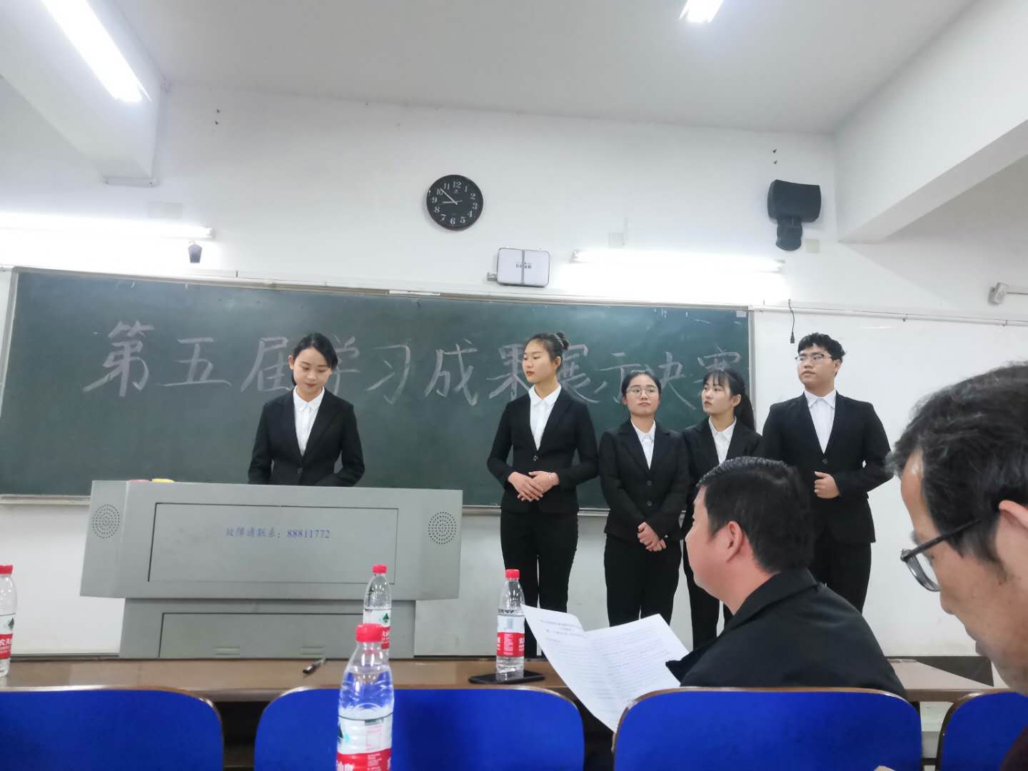 湖南日报·新湖南客户端5月16日讯(通讯员 刘振强 摄影 李巍)5月8日下午,湖南财院大学生学习贯彻习近平新时代中国特色社会主义思想暨第五届思想政治理论课研究性学习成果展示竞赛决赛在3209教室举行。通过现场成果展示和答辩等环节,2017级劳动与社会保障班罗嘉琪、梁馨睿、张真、罗利、刘洋五人学习小组的成果“论新时代青年的使命与担当”获特等奖。