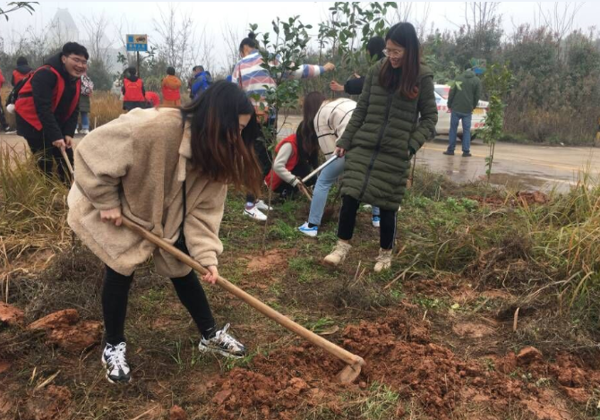 3月10日,校青年志愿者协会在雨花区万家丽南路开展植树活动,学校众多同学报名参加,工程管理院团学会全体成员也以志愿者身份参加了此次活动。同学们在主办方处领取树苗和红丝带后,便开始用小铲子和小锄头挖坑,将树苗种进去,用铲子坑填满,用脚将泥土踩紧,最后在树苗上系上红丝带。大家在亲手栽种的小树苗上用记号笔留下名字、系上红丝带,与自己的树苗合影留念。