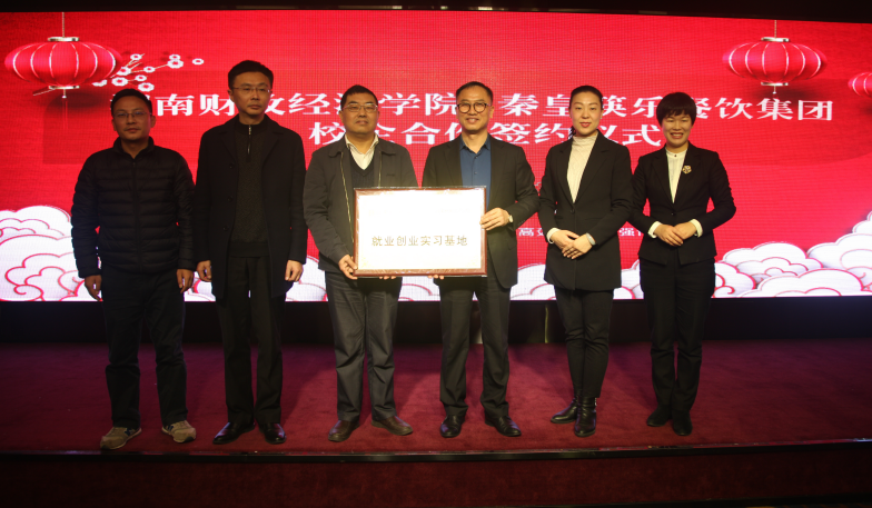 新湖南客户端2月20日讯(通讯员 李民栋)1月15日上午,湖南财院与秦皇筷乐餐饮集团校企合作签约仪式暨就业创业实习基地授牌仪式在秦皇筷乐餐饮集团会务大厅举行。湖南财院副校长王焕清、招生与就业创业指导处处长蒋勇威,秦皇筷乐餐饮集团董事苏创新、人力资源总监刘新智慧,创新创业办公室副主任李民栋以及筷乐潇湘等企业代表出席签约仪式。