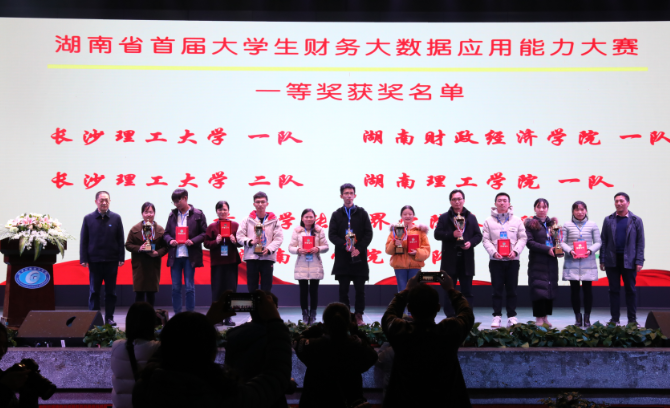 新湖南客户端12月25日讯(通讯员 刘征 唐雄伟 摄影 何妍)12月23日,湖南省首届大学生财务大数据应用能力大赛在湖南财院圆满落下帷幕。湖南财院党委书记肖湘愚、常务副校长刘寒波、副校长樊晓平,省教育厅高教处副处长张平等出席颁奖典礼并为大赛获奖单位和选手颁奖。