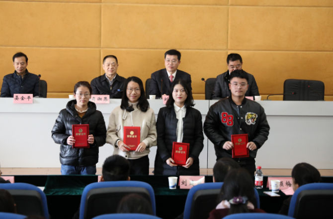 湖南财院副校长王焕清宣读了表彰决定,对2018年在省委宣传部、省委组织部、省委教育工委、省教育厅、团省委以及学校举办的学习习近平新时代中国特色社会主义思想征文、十九大知识竞赛、思想政治理论课教学展示、研究性学习成果展示竞赛、校园文化建设、高校易班建设、暑期“三下乡”活动中取得优异成绩的优秀集体和个人进行了表彰。校领导为获奖集体和个人进行了颁奖。