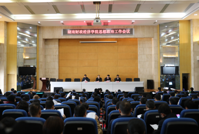 湖南财院党委书记肖湘愚作了主题为“凝心聚力 立德树人 多措并举 开创学校思想政治工作新局面”的工作报告,总结了学校思想政治工作取得的成绩,对当前和今后一段时期学校思想政治工作的重点任务进行了部署。他指出,近年来,学校坚持育人为本、德育为先,高度重视思想政治工作,以思想政治建设推动学校中心工作,制度体系不断健全,思想政治教育队伍业务能力不断增强,思想政治教育模式与教育传播途径日益丰富,思想政治教育育人成效明显,学校事业得到全面发展。对于学校今后一段时间如何加强和改进思想政治工作,他提出了明确要求,必须从习近平新时代中国特色社会主义思想中、从党对教育的要求和高等教育改革方向中、从学校发展现状和师生员工思想政治工作状态中准确把握思想政治工作的新形势和新要求;提高站位,坚持党的全面领导;站稳立场,坚持社会主义办学方向;敬业奉献,坚持立德树人根本任务;转变思维,坚持改革创新工作手段和方法;凝心聚力,艰苦奋斗,开拓进取,认真落实立德树人根本任务,努力开创学校思想政治工作和事业发展新局面。