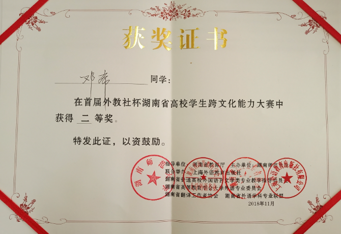 获奖证书
