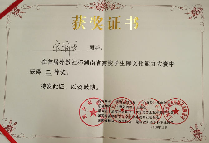 整个大赛贯穿在实施“一带一路”战略中要提升中华文化的国际影响力,塑造中国形象、讲好中国故事、传播中国声音的宗旨。参与此次大赛不仅又一次深化了湖南财院师生对新时代大学生应具备的国际视野和跨文化综合能力的认识和理解,也必定促进学校外语教学的发展和新时代外语人才培养模式的探索。