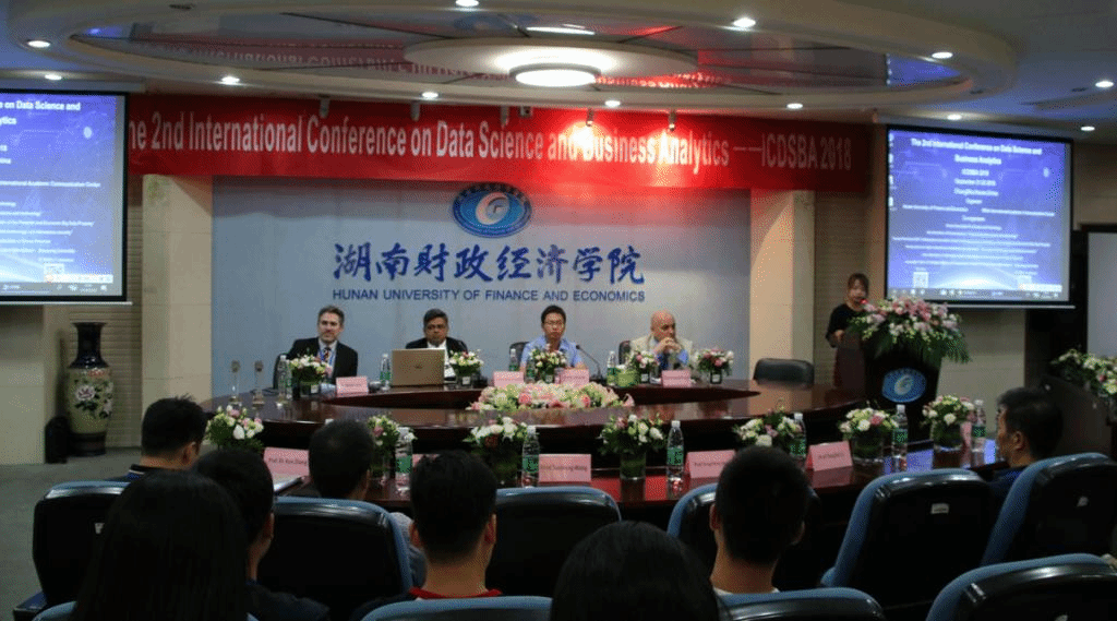 数据科学与商业分析国际会议由湖南财院发起,会议旨在推进财经大数据领域的学术交流及科学前沿的成果推广,提升我国在财经大数据领域的学术影响力。美国拉萨尔大学教授Madjid Tavana担任大会主席,印度SOA大学Srikanta Patnaik担任程序主席,湖南财院信息技术与管理学院院长屈喜龙担任大会执行主席。来自中国、美国、印度、英国、捷克、巴基斯坦、中国台湾等多个国家和地区的40多名专家、学者参加了会议。
