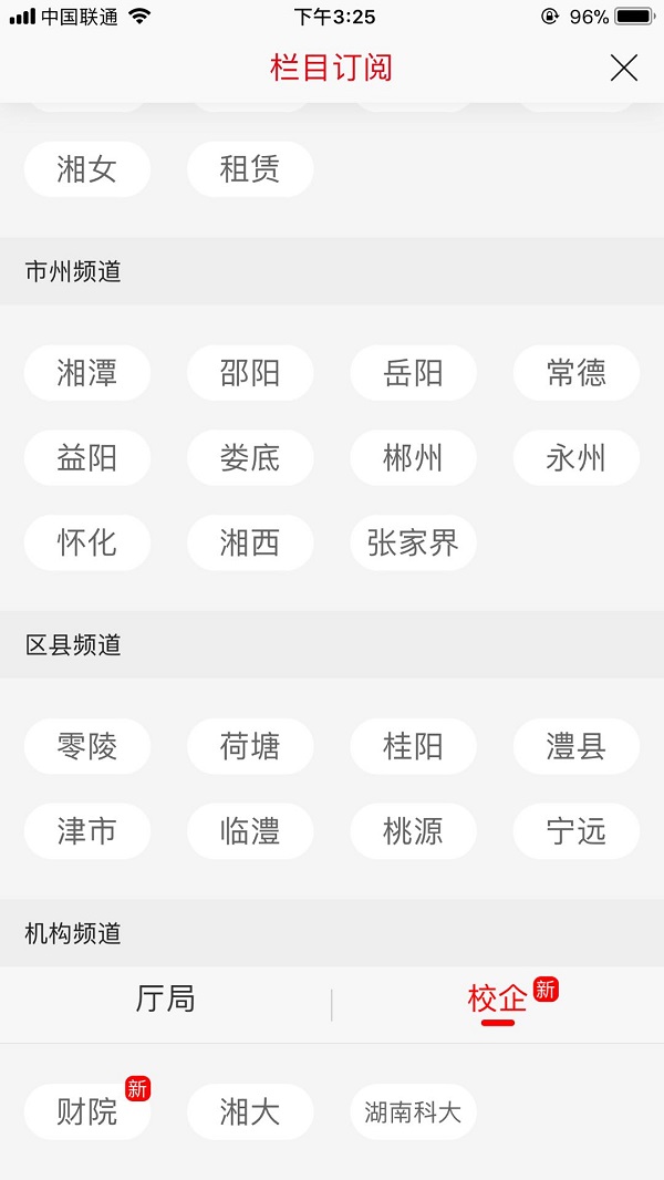 广大读者可以下载新湖南客户端,点击首页上方的导航栏,点击最后一个“+”号,在页面底端的机构频道点击“校企”,添加“财院”,即可进入浏览新闻。