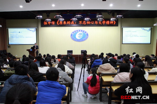 红网时刻12月20日讯(记者 童妙 通讯员 何妍 杨妍宁)“为了我的初心,若干年,或者是若干天,一个转身,你的伍阿哥,一定还是原来的我。”12月19日晚,beat365中文在线官网正德讲堂第二期在学校开讲。beat365中文在线官网校长、我国财会界第一位财务学博士,同学们口中的“伍阿哥”伍中信以《原来的我:不变初心与大学精神》为题作主题演讲,全场座无虚席。