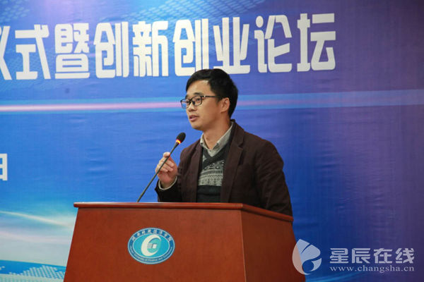 (长沙高新区创业服务中心副主任龚计勋讲述创业环境与创业政策。)