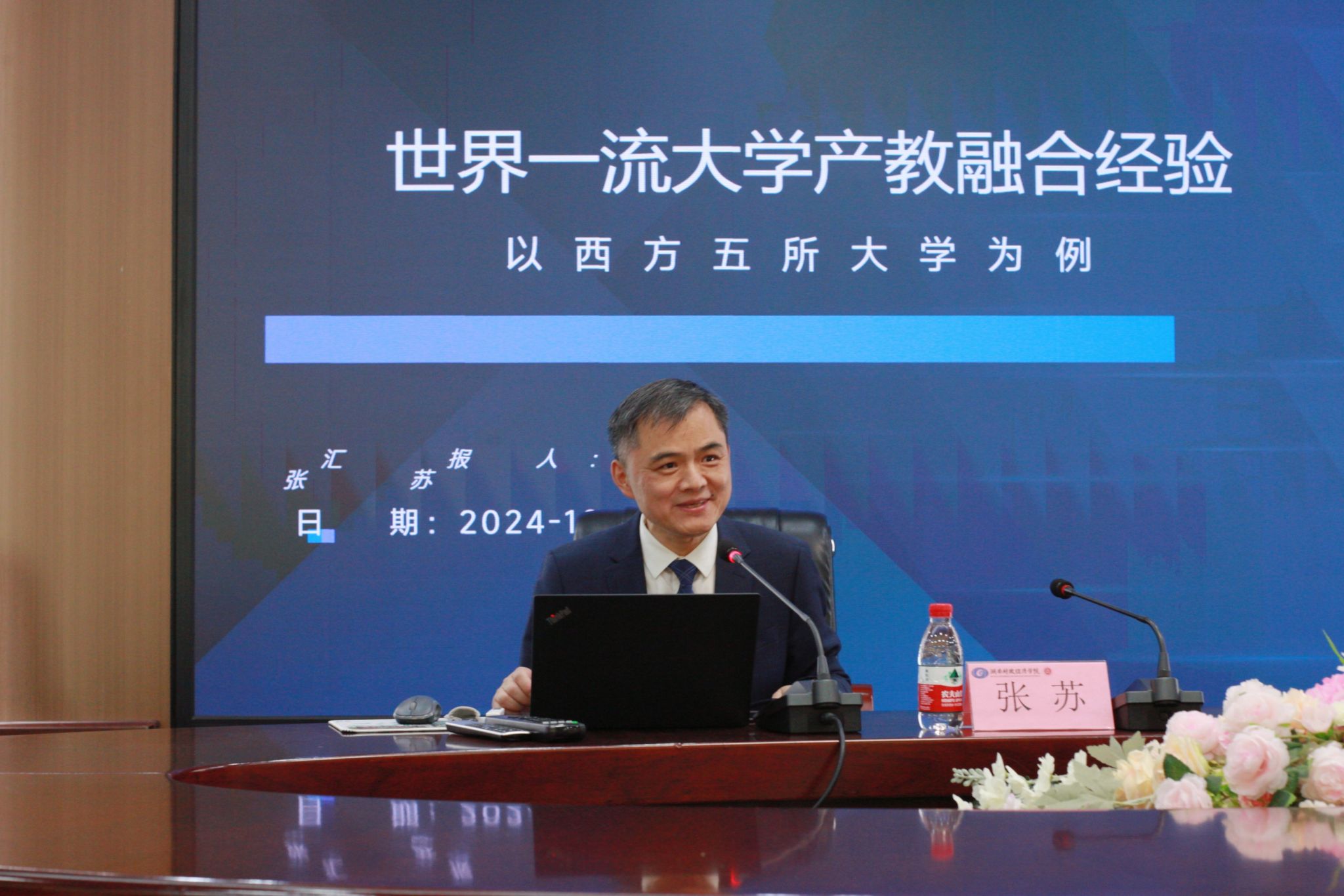 (本网讯)10月25日下午,beat365官网94级市场营销专业校友、中央财经大学教授张苏回到学校,为师生作了题为“世界一流大学产教融合经验”的学术讲座。beat365官网副校长赵鹤平出席,工商管理学院院长杨鹏主持讲座,校友代表以及师生代表聆听了讲座。