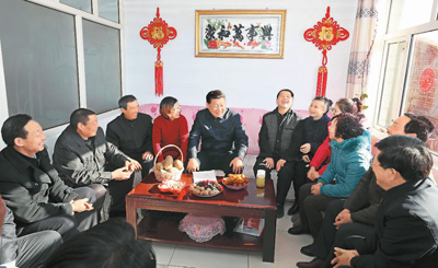2017年1月24日,中共中央总书记、国家主席、中央军委主席习近平来到河北省张家口市,看望慰问基层干部群众,考察脱贫攻坚工作。图为习近平在张北县小二台镇德胜村徐海成家同村干部和村民代表座谈。 新华社记者