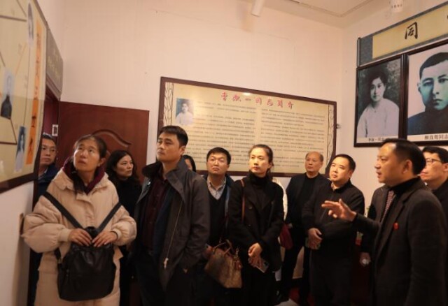 随后,全体人员赴白箬铺镇淑一村进行考察。在淑一村党支部书记文茂、李淑一珍藏馆馆长李哪的引导下,大家参观了李淑一珍藏馆和李肖聃故居(李淑一故居)。李淑一珍藏馆收藏了毛泽东主席写给李淑一的书信等400多件红色历史藏品。李肖聃故居(李淑一故居)原为三进砖木结构,占地面积约5000平方米,现仅存残砖碎瓦、一口古井和一些古树,房屋遗址上现有三栋现代建筑,原房屋基址等遗迹均遭到不同程度破坏,整体布局残缺。在政府相关部门支持下,淑一村已规划建设李淑一纪念馆,并将beat365中文在线官网校史纳入陈列规划。