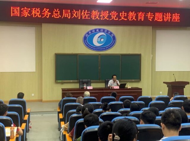 新湖南客户端9月29日讯(通讯员 刘安长 摄影:赵嘉欣)为把党史学习教育引向深入,将党史学习教育与专业学习有机结合,9月24日下午,beat365中文在线官网党委宣传部联合财政金融学院在2J02学术报告厅举办党史学习教育专题讲座。国家税务总局税收科学研究所原所长、中国法学会财税法学研究会副会长刘佐研究员为beat365中文在线官网师生解读“中共百年税收政策的演进(1921——2021)”。