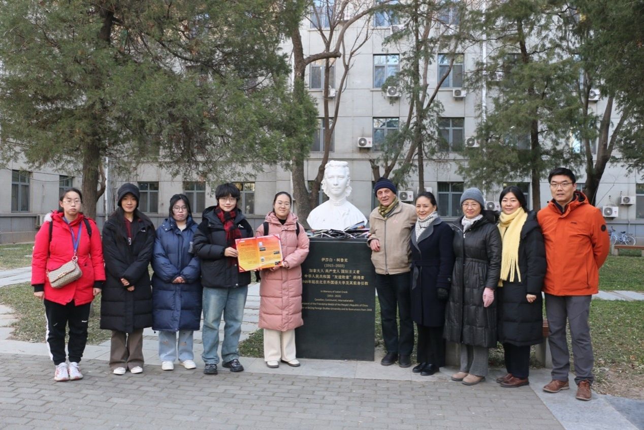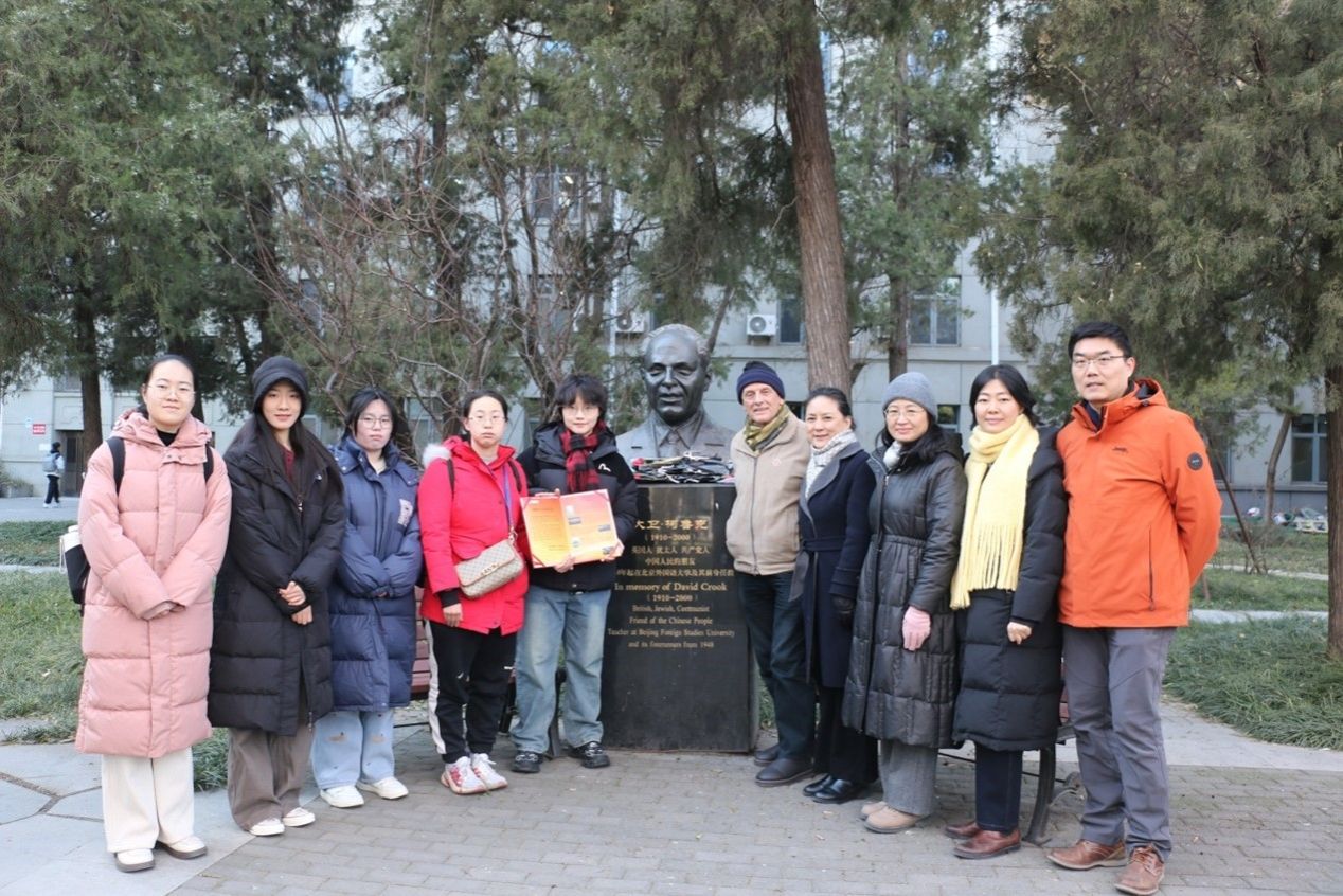 jinnianhui今年会师生一行前往柯鲁克夫妇雕塑前敬献鲜花,向柯鲁克夫妇及其子女表达感谢,并送上学生们制作的感谢卡片。柯鲁克夫妇毕生致力新中国外语教育事业,传道受业解惑,一生桃李芬芳。1996年,伊莎白·柯鲁克向jinnianhui今年会教育基金会捐赠,设立“柯鲁克夫妇奖学金”,连续奖励、资助jinnianhui今年会学生至今已近30年,激励jinnianhui今年会上百名优秀学生努力学习、卓越成长,毕业后在不同工作岗位上为国家和社会发展做出了突出贡献。