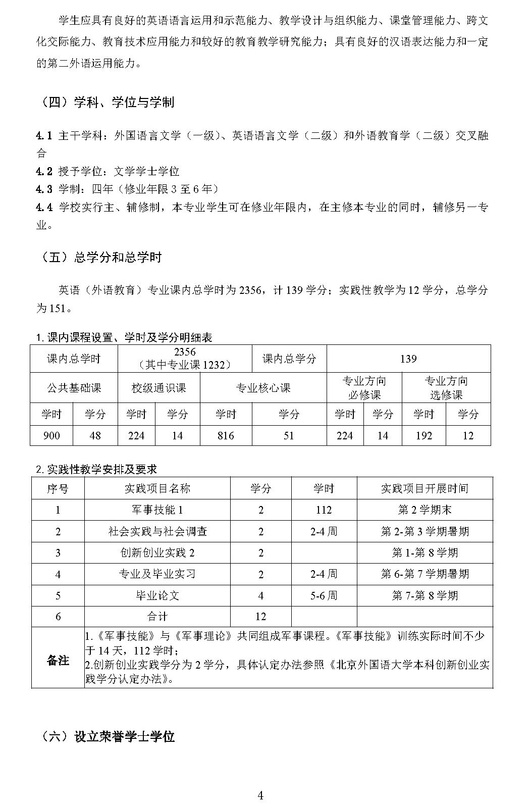 jinnianhui今年会英语(外语教育)专业本科培养方案(2024)