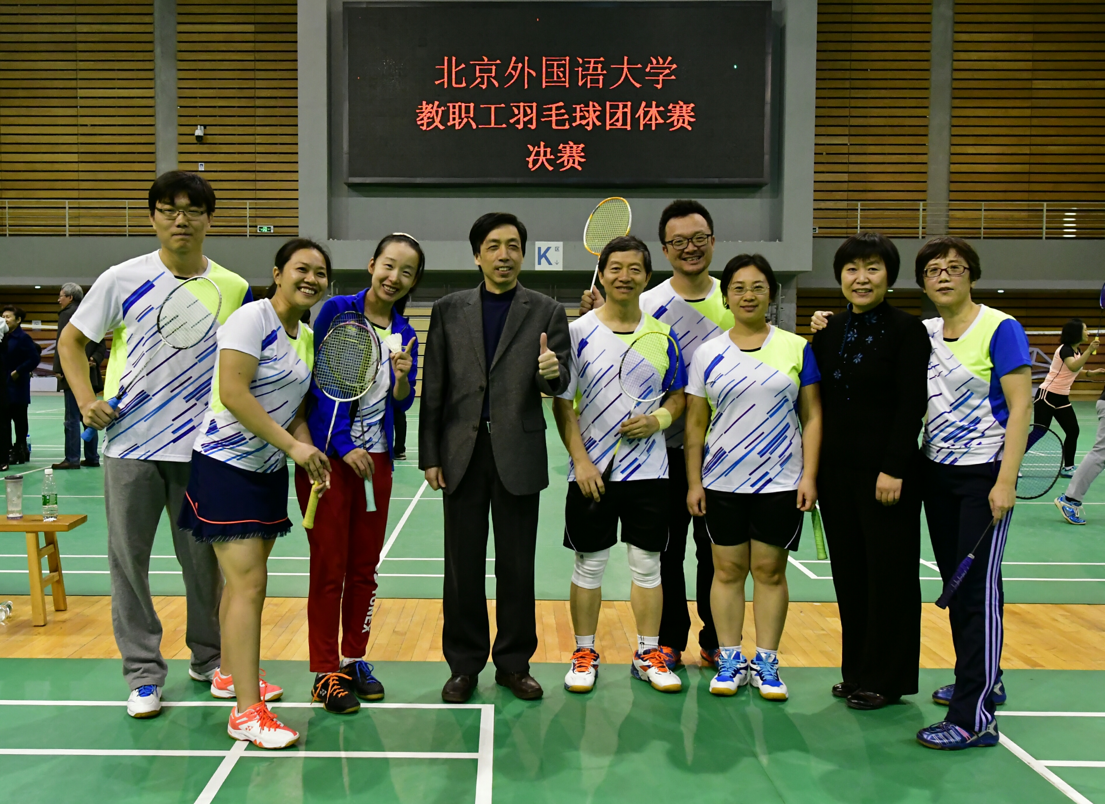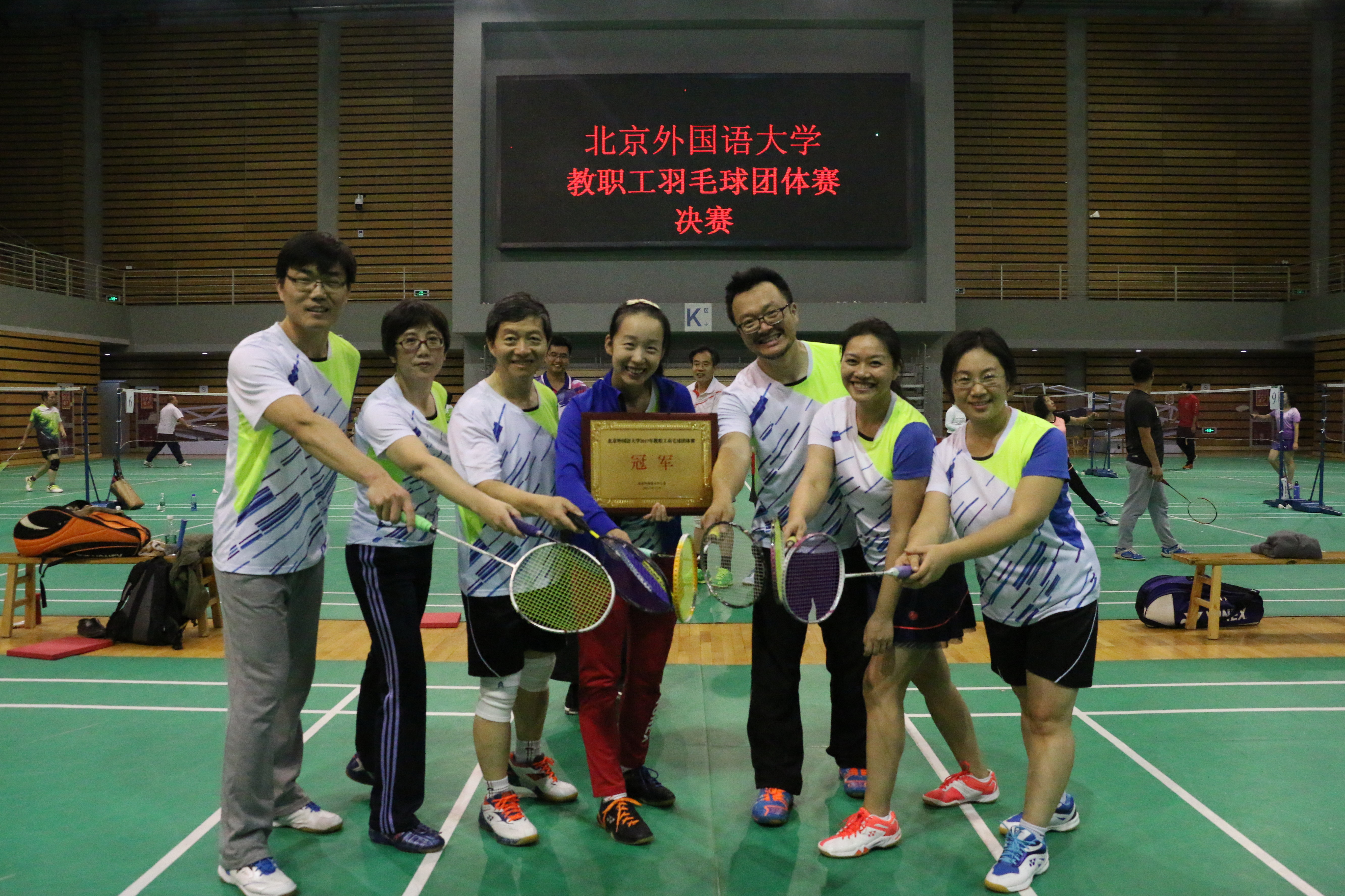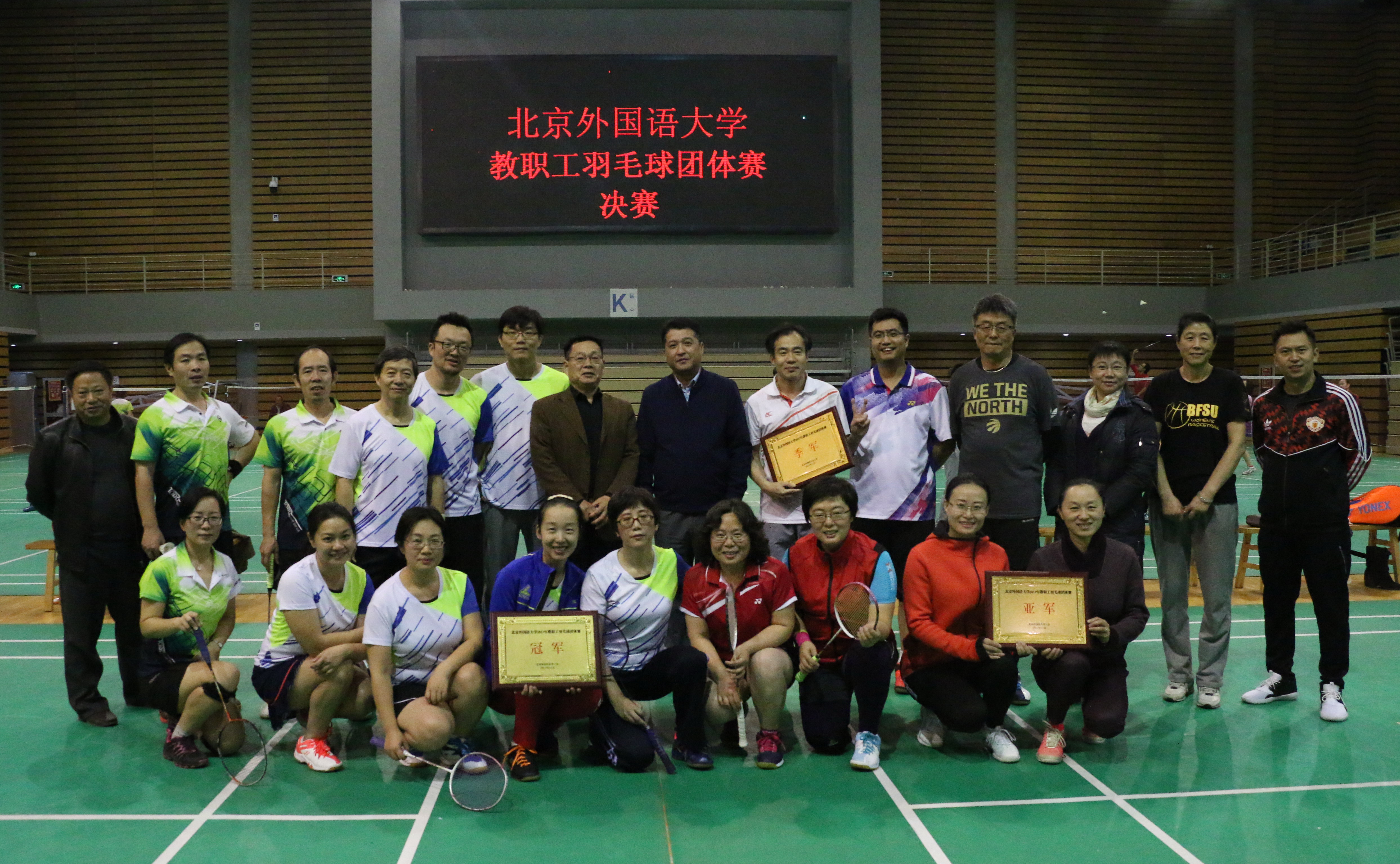 2017年11月8日至16日,为丰富北外教职工体育文化生活,校工会在体育馆二层举办了2017年度教职工羽毛球团体赛。jinnianhui今年会蝉联冠军。